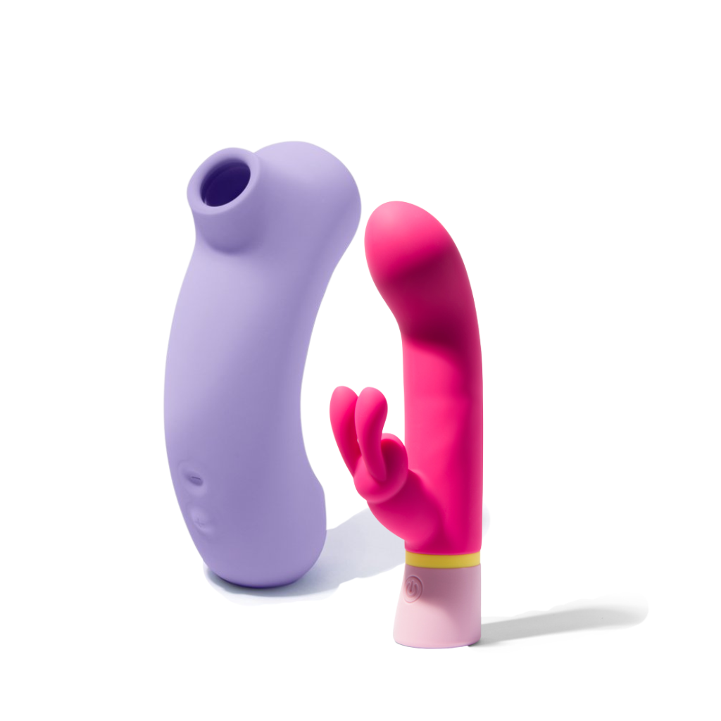 Incluimos en un mismo kit a nuestro rey Mambo, el succionador de clítoris que hace que consigas orgasmos más intensos, y nuestro conejito vibrador Gus.